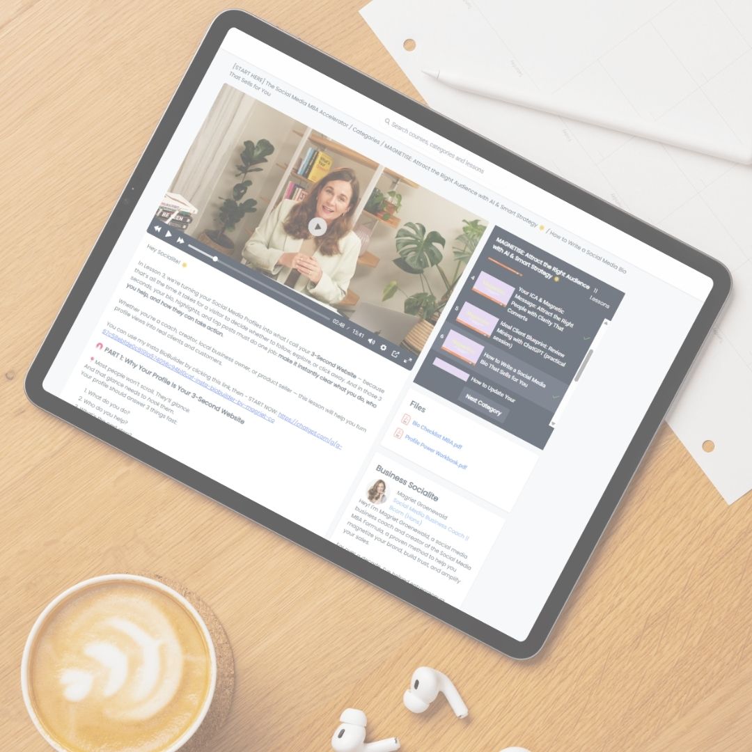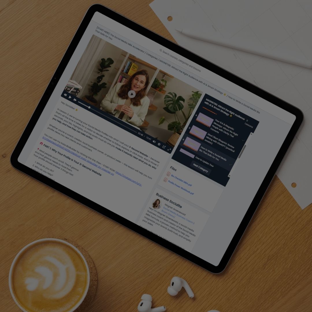 A membership that helps you show up consistently on social media, grow your audience, and convert followers into customers with clear strategy, accountability, and ongoing support.